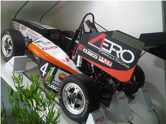 北航AERO-2013赛车外观造型靓丽大气,曾于2013年在襄阳中国大学生方程式汽车大赛现场得到了众多好评。为推动宣传大学生方程式赛事,中国汽车工程学会特邀北航AERO-2013赛车参加北京车展并在其展台上展出,展台位于中国国际展览中心(天竺馆)W2厅与W3厅之间的通道上,展台设计时尚别致,富有现代化。