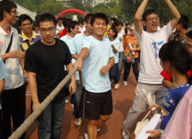 9月25日,北航首届研究生运动会在校体育场举行。我院共42名研一新生参加了入场式,他们喊着嘹亮的口号、迈着稳健的步伐向全校师生展现了交通学院的风采,获评全校运动会入场式三等奖。在上午的田径项目中,刘洋和朱金龙同学分别取得跳远第二名、铅球第五名的优异成绩。在下午的趣味项目竞赛中,交通学子齐心协力,打入拔河四强,最终获得团体总分第8名。袭杰、周少鹏、阮杨志、刘洋代表学院参加4X400接力,并斩获全校第二名。参加运动会的新生们不仅为学院赢得了荣誉,更赛出了朝气蓬勃的风采。这次精彩的运动会将长久留在大家的记忆中。